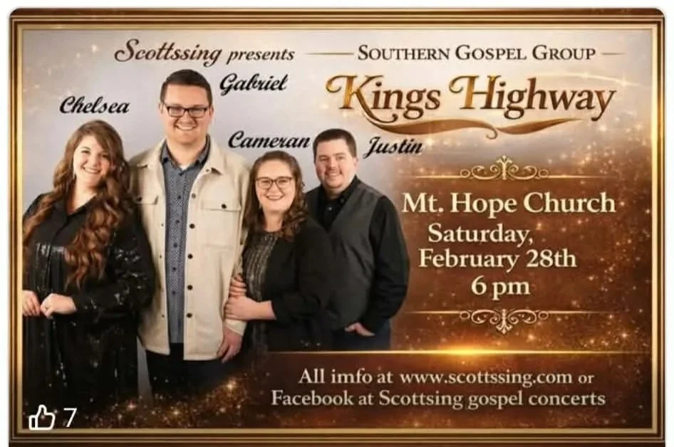 Join us at Mt. Hope Church for a night of uplifting music and fellowship featuring King’s Highway.